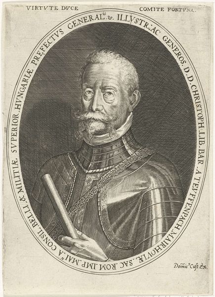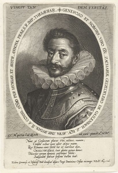 Aegidius Sadeler II created this portrait of Mattheus Wacker von Wackenfels using graphite. Sadeler was part of a Northern Mannerist artistic movement, known for its elegance and refinement, which served the elite class. In the late 16th century, portraits such as this functioned as symbols of status and power, particularly for men. Mattheus's stern gaze and the fine details of his ruffled collar and ornate armor reflect his high social standing. Sadeler's choice of graphite, a medium that allows for detailed and precise lines, speaks to the value placed on capturing a likeness and conveying the subject’s character. But consider what’s missing: in this unfinished portrait we are left to wonder about the man beneath the veneer of nobility. We are invited to ponder the weight of expectation on individuals like Mattheus, and the tension between public image and private self.