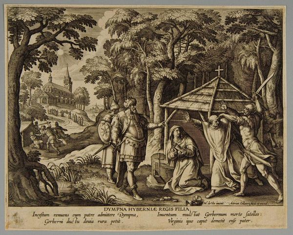 Editor: Here we have Johann Sadeler's "Balaam and His Ass," an engraving. It feels so theatrical, almost staged. What can you tell me about it? Curator: Look at the labor involved in producing this print. The engraver meticulously transferred an image onto a metal plate, using tools to create lines that would hold ink. It was a commercial product, a means of disseminating biblical stories. Editor: So, it's less about high art and more about the process of making and distribution? Curator: Exactly. How does its creation as a commodity affect its reception? Consider who would have purchased this and how it might have been used. Editor: That definitely shifts my perspective. I see it less as a standalone artwork and more as part of a larger system of production and consumption. Curator: Precisely. It's a window into the material conditions of artmaking in the 16th century.