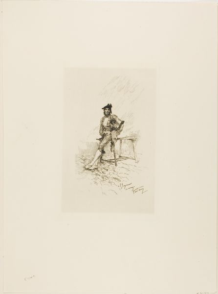 Curator: Let’s turn our attention to this intriguing lithograph by Auguste Raffet, titled "Sheet with Stumped Sketch," created in 1839. My initial impression is one of starkness, the contrasting blacks and whites give it a graphic quality. Editor: It's interesting you say that. I immediately see figures burdened by circumstances beyond their control. There is this clear depiction of how society and conflict mark individuals, showing figures possibly from different sides. Curator: The means by which Raffet created this – lithography - are telling. Prints were easily reproduced and circulated. His choice of lithography aligns with his democratized artistic practices making the work accessible. Editor: Absolutely. And that accessibility allowed these images to inform public perception of conflict and individuals, playing into political ideologies prevalent at that time. The very act of depicting them carries an agenda, doesn't it? Curator: It makes me consider the conditions of the workshop, the availability of materials like the quality of the paper or the grade of pencils. How these might have impacted Raffet's mark-making. Editor: Looking closer, the man with the turban looks almost pained. The weight of his belongings combined with that facial expression, shows suffering experienced by those caught between political agendas. How might they view the very labor that produced this lithograph portraying them? Curator: You’re raising the complex matter of artistic labor and who benefits. From an economic point of view, prints like this sustained artists. We should examine the production chain too, not only to honor the under recognized workers of printmaking. Editor: Precisely, because the materials themselves are connected to power. Consider how access to materials, labor and even representation, reflects social power structures. Who has access? Who is left out? Curator: It’s a testament to Raffet’s skill that the print is so emotive. The quick strokes, the shadowing gives a strong sense of the immediate context. It encapsulates human determination against material adversity. Editor: The print asks us to consider not just the surface representation, but how political factors mold even the most intimate individual experiences, which resonate profoundly even today.