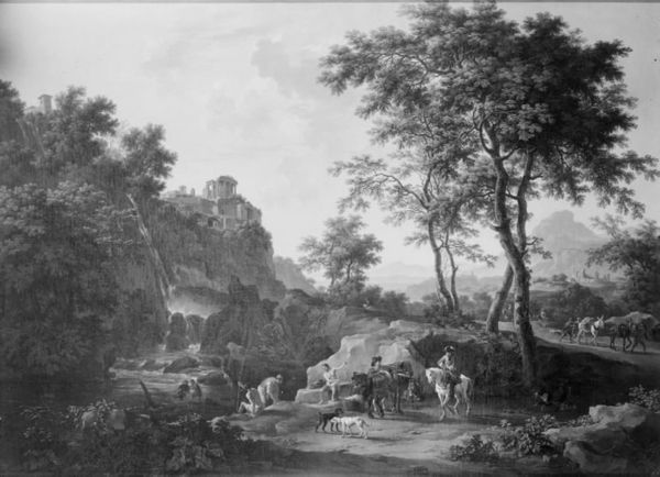 Philips Wouwerman, a Dutch painter, created this painting, "Hunting to Hounds," in the mid-17th century, during the Dutch Golden Age. Wouwerman specialized in equestrian scenes, often depicting the leisure activities of the wealthy. Hunting, as shown here, was a popular aristocratic pursuit, and Wouwerman's paintings offered a glimpse into the life of the upper class. This work is an example of genre painting, which grew in popularity at this time due to the rise of a wealthy merchant class who were eager to display imagery that reflected their values and status. The landscape here is ordered and tranquil, reflecting the cultural values of the time and reminding us that even the presentation of nature is subject to institutional forces. By studying paintings like this alongside archival documents we can better understand the social and economic structures that shaped Dutch society in the 17th century.