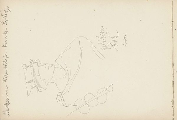 Curator: Here we have Antoon Derkinderen's sketch, "River Gods Amstel and IJ for sculptures on the facade of Amsterdam City Hall," rendered in pencil on paper sometime between 1900 and 1903. What’s your first take? Editor: It feels more like a whispered idea than a fully formed declaration. The sketchiness gives it an ephemeral quality, as if these river gods are emerging from a dream. Curator: Absolutely. He’s capturing these mythological figures in transit, translating them from idea to monumental sculpture. The flowing lines, I think, suggest the movement of the rivers themselves, imbuing the figures with a fluid, almost restless energy. Note how the headdresses indicate flowing streams. Editor: The symbolic language here is powerful. We see Amstel adorned with a crown, and the subtle indication of nets and fish hint at abundance and the city's dependence on its waterways. Rivers, especially in the low countries, represented not just geography but vitality, transportation, commerce... life itself. Curator: Right, Amsterdam was utterly shaped by its connection to these waters. The Amstel and the IJ became central metaphors for the city's identity and prosperity. Derkinderen, deeply invested in cultural storytelling, cleverly utilizes these allegorical figures, reflecting back at the community. There's a vulnerability too, because a city on the water has a different type of pulse than a landlocked city. Editor: Indeed. In many mythologies, river gods act as guardians, oracles, binding humans and nature in a symbiotic dance. What do you imagine visitors of Amsterdam made of these monumental works and representations when viewing these for the first time? Curator: Perhaps a potent reminder of their inextricable link to the rivers. To water’s grace, its power, its lifeblood. We are also reminded that everything changes, always flowing from one state into another, whether an emotion, thought, stream or drawing. Editor: Well, it's a striking testament to how symbols can connect us to our past and water can unite people, both materially and imaginatively. Curator: Yes, from a delicate sketch on paper to imposing guardians carved in stone, this dialogue really flows…