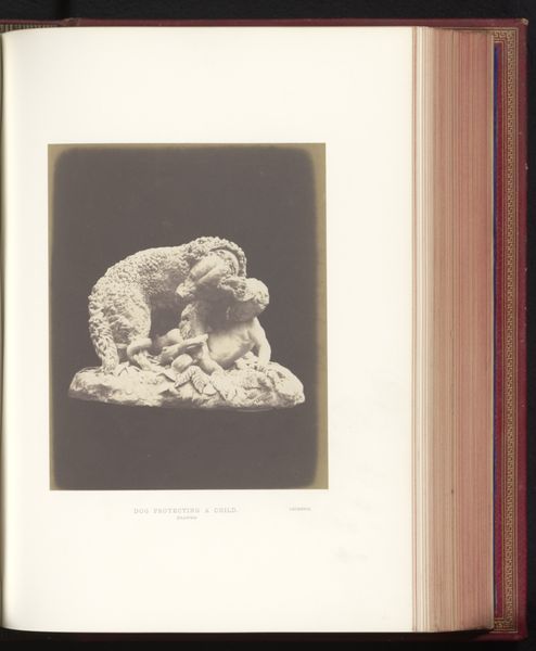 This photograph captures Auguste Jean Baptiste Lechesne's sculpture of a child and a dog, displayed at the Great Exhibition of 1851 in London. The sculpture presents an idealized, sentimental vision of childhood and domesticity, reflective of Victorian-era values. The figures of the child and dog are entwined in an embrace, symbolizing loyalty and protection. Representations like these often glossed over the harsh realities of the Industrial Revolution, especially regarding child labor and social inequalities. Instead, they promoted a narrative of innocence and familial harmony, yet often remained inaccessible to the working classes due to economic constraints. Such pieces encouraged emotional connections with art, fostering a sense of shared cultural values. The sculpture serves as a potent reminder of how art can both reflect and shape societal ideals, inviting us to consider whose stories are told and whose are left out.