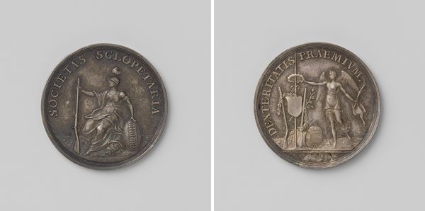 This is a medal by Thomas Wyon the Younger, commemorating the Battle of Waterloo, presented to John Nicoles of the King's German Legion. Made in 1816, it speaks to the role of the monarchy and military in shaping British identity at the time. The medal features a portrait of Prince George, acting as Regent, adorned with laurel leaves, a classical symbol of victory. On the reverse, we see a winged figure of Victory, further emphasizing the triumph at Waterloo. The medal was awarded to soldiers who fought in the battle, so its imagery would likely have been powerful and emotive for its recipients. The King's German Legion, for example, comprised exiled German soldiers who fought against Napoleon. Understanding the medal requires research into the history of the Napoleonic Wars, the British monarchy, and the recipients themselves. These contexts help us to interpret the medal not just as a work of art, but as a historical artifact with social and cultural significance.
