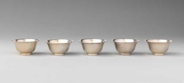 These six miniature saucers were crafted in England by David Clayton in the late 17th or early 18th century from silver. Clayton expertly manipulated the material, using techniques like hammering and possibly casting, to create these delicate forms. The silver's inherent qualities – its sheen, malleability, and ability to be intricately shaped – are fully exploited. The scalloped edges and subtle curves speak to a sophisticated understanding of design and functionality. The artistry involved in creating these saucers reflects a skilled tradition, blending practicality with refined aesthetics. Silver was a material of wealth and status. Consider the labor involved in mining, refining, and shaping the silver. These saucers signify both luxury and the complex social dynamics of labor and consumption in the period. They bridge the gap between functional objects and artistic expression, challenging any rigid divide between craft and fine art.
