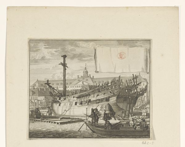 Editor: So here we have David Kleyne's "River with Various Large and Small Ships," an etching from 1785. There’s such a stillness to it, despite all the boats – almost like time is suspended. The water's so calm. What captures your imagination when you look at this? Curator: The calmness, yes! It whispers stories of Dutch Golden Age seascapes but with a knowing wink. Kleyne captures the industry of the port, all those tiny figures bustling about their business. But the stillness, that's the genius, isn't it? Do you feel a little melancholy there, too? I can’t help but feel there's something a bit… wistful about it all. Maybe I'm projecting! Editor: Melancholy is a great word for it! I was thinking peaceful, but melancholy feels more accurate. Do you think he was trying to idealize daily life, or perhaps comment on its fleeting nature? Curator: Maybe both? Etchings often served to document and elevate everyday scenes. There's a beauty in the mundane, right? The gentle light, the intricate rigging…Kleyne immortalizes a moment. Yet, that calmness... perhaps it’s a visual poem about how everything, even a busy port, eventually stills and fades. What will they think of our etchings in two hundred years, I wonder? Editor: That's a lovely thought. I hadn't considered the passage of time in the etching itself, but that certainly adds another layer of depth to it. Curator: Precisely. It becomes less a picture of ships and more a contemplation on existence, on industry, and on how we all sail, however briefly, on this river of time! Thank you for that reflection! Editor: Absolutely! Thank you for sharing your perspectives; I'll never look at another seascape the same way!