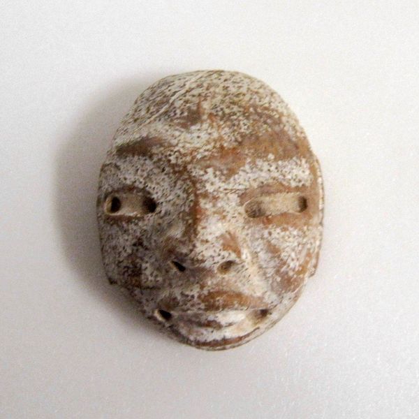Editor: We’re looking at a miniature mask, estimated around 1500, attributed to the Tlatilco culture. It’s made of ceramic or earthenware. The expression seems so serene, almost dreamlike. What do you see in this piece? Curator: I see a powerful artifact connected to broader social structures and spiritual beliefs of the Tlatilco people. Think about what it meant to represent the human face at that time. It wasn't just about likeness; it was about conveying status, gender, or even a connection to the divine. Who do you think this mask might represent, and what role might it have played in their society? Editor: I’m not sure. The closed eyes could represent someone who has passed on, perhaps an ancestor? Could this be related to honoring the dead? Curator: Exactly! Archaeological evidence suggests the Tlatilco people had complex funerary rituals. These masks, often found in burial sites, may have served as conduits to the ancestral world, solidifying community identity through lineage. The act of creating it itself must be seen as a deeply political one – remember who had the power to create and control such important cultural objects. How does knowing this shift your understanding? Editor: It really contextualizes it. It’s not just a serene face; it’s a statement of cultural power, identity, and spirituality. Curator: Precisely. Art like this serves as a poignant reminder that we must investigate the cultural and historical context surrounding an artwork. Editor: That gives me so much to think about. Thanks for sharing your insights!