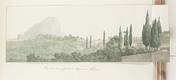 Editor: Here we have Louis Ducros’s “View of Scaletta in Sicily near the Coast,” created in 1778 using pencil and etching. There’s something very serene and still about it. What's your take on it? Curator: Serenity is a good starting point. I think it’s important to see this landscape through a lens of power. The eighteenth century was an age of empire, and landscapes like this one often served to subtly claim territory, natural resources, and the labor of the people who lived there. What does the high vantage point suggest to you? Editor: Maybe the artist is emphasizing a feeling of ownership, like looking down on a place they control? Curator: Exactly. And consider the style—Neoclassicism. It often evokes a sense of order and reason. Ducros isn't just showing us a view; he's presenting a vision of a world where everything has its place. But what's missing? Look closely. Editor: I don’t see any people… The architecture seems empty, almost staged. Curator: Precisely! Where are the Sicilians? This absence is a telling detail. Their stories are erased, making it easier to present the land as a blank canvas, ready to be occupied and exploited. The romanticism hides an insidious narrative. What do you make of that? Editor: So, this idyllic scene is actually propagating a specific worldview? That's… unsettling. I never considered landscape art in that way before. Curator: Art can reflect, reinforce, or even challenge social hierarchies. Thinking about art this way can allow us to explore the intricacies of political history and power dynamics embedded within seemingly calm surfaces. Editor: That's definitely given me a lot to think about, a whole new perspective really. Thanks for pointing that out. Curator: It’s rewarding to see a fresh reading of these works emerge through critical engagement.