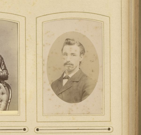 Arnold Nelius Marinus Johannes Fock created this portrait of a woman, whose date is unknown, using a photograph. The portrait, framed within an oval, presents a study in contrasts and containment. Soft, diffused tones define the woman's face, contrasting with the sharper, more deliberate lines of her attire and the frame itself. The composition locks the subject into a defined space that offers a play between freedom and constraint. This photograph provides a semiotic reading of the late 19th-century portraiture conventions. The oval frame traditionally signifies a contained, idealized representation, yet the soft focus and intimate scale challenge the rigid formality associated with such portraits. The artist destabilizes conventional portraiture by merging formal structure with an informal approach. The photograph’s material qualities and the artist’s treatment underscore a tension between public presentation and private identity, reflecting ongoing cultural and philosophical discourse. The work emphasizes that artistic meaning is an ongoing interpretation, shaped by its aesthetic form and broader cultural context.