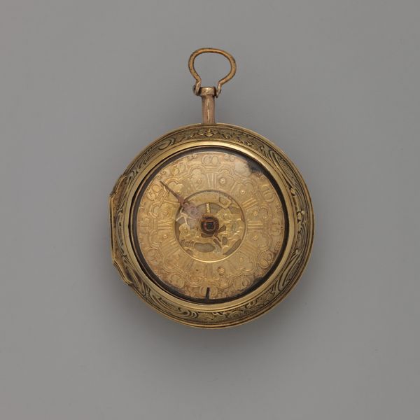 This clock-watch with sundial was made by Jan Jansen Bockeltz, likely in the early 17th century. Its design is a beautiful collision of form and function. The oval shape, rendered in gleaming gold, immediately catches the eye. The intricate carvings create a tactile experience, an almost haptic invitation to touch. The clock face itself is surrounded by decorative patterns, a semiotic code, which elevates the object beyond mere utility. The sundial, revealed when opened, transforms the watch into a miniature scientific instrument, merging art with empiricism. The geometric precision of the sundial contrasts with the ornate embellishments, creating tension. Through its design, this clock-watch challenges the fixity of time, proposing that time can be measured in different ways, both mechanically and through the sun. It destabilizes the boundary between ornamentation and functionality. The result is not just a timepiece, but a portable philosophical statement about time itself.