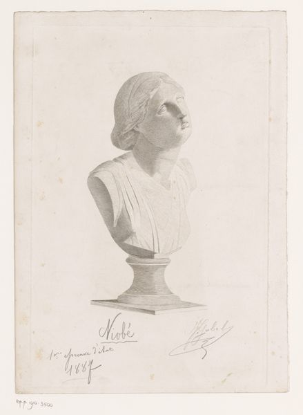 Auguste Danse created this drawing of a bust of Psyche. The image captures the prevalent Neoclassical artistic conventions which looked back to ancient Greek and Roman ideals of beauty and mythology, yet it also marks a moment in time when traditional representations of women were starting to be questioned. Psyche, as a figure of the soul, embodies themes of love and transformation through adversity. Danse renders her as a figure of delicate beauty, a symbol of feminine virtue that was highly valued in the 19th century. Yet, the drawing also hints at the changing roles of women in society, with the rise of feminist movements and discussions around female identity. Danse perhaps subtly acknowledges these shifts, portraying Psyche with a sense of introspection that invites viewers to consider the complexities and inner life of this mythical figure. This work captures the artistic practices of its time while resonating with broader societal questions about the construction of identity, emotion, and the enduring power of classical mythology.