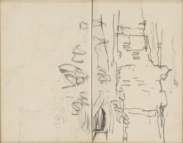 George Hendrik Breitner made this study, possibly of a building, with graphite on paper. The quick, searching lines give it a real sense of immediacy. It's like we're right there with the artist, capturing a fleeting impression. I love the texture in this drawing – the way the graphite catches on the paper, creating these little pockets of shadow and light. You can almost feel the rough surface beneath the artist's hand. Look at the confident strokes suggesting a structure; they're so direct and unpretentious. It's not about perfection, it's about capturing the essence of the scene. This sketch feels like a precursor to the work of someone like Cy Twombly, who also embraced a kind of raw, intuitive mark-making. It's a reminder that art doesn't always have to be polished and refined – sometimes the most powerful works are those that feel like a direct expression of the artist's inner world.