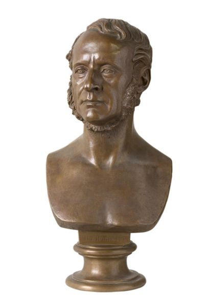 Curator: Here we have H.W. Bissen’s bronze sculpture, “Filologen, professor J.N. Madvig,” created in 1857. Editor: My first impression is… reserved. It’s formal, yet the subtle textures in the bronze make it feel quite human. There’s a palpable sense of authority, perhaps even stoicism, emanating from it. Curator: Indeed. Bissen was working within a strong tradition of neoclassical portraiture, influenced by figures like Thorvaldsen. The sculpture is, of course, a representation of Johan Nicolai Madvig, a prominent Danish philologist and classical scholar. Its context sits squarely within academic circles. Editor: And given Madvig's intellectual contributions, this work becomes interesting when considered within broader discussions about who gets to be memorialized and celebrated in public art. Who gets bronzed, so to speak, and why? Was this commission influenced by Madvig's contributions to national identity in a turbulent period of rising nationalism in Europe? Curator: Exactly. The institutional support for academic art during this period played a critical role. The Royal Danish Academy of Fine Arts shaped artistic production, setting standards and rewarding certain styles. There's a discourse about power structures at play. Academic standing determined which intellectuals were seen to represent particular notions of civic values. Editor: So, Bissen's work, while ostensibly a simple portrait, participates in that very power dynamic by granting Madvig this form of immortality and endorsing a very particular form of scholarship and social role. Do you feel the material itself, the choice of bronze, furthers that aim? Curator: Undeniably. Bronze conveys a sense of permanence and importance that aligns well with the desire to monumentalize figures deemed significant to society. It signifies value, both monetary and symbolic. These choices solidified his public role, especially as statues often end up in highly public spaces. Editor: Thinking about Madvig and considering the academic environment—how might we unpack contemporary interpretations? Today we recognize knowledge production as embedded within webs of power, gender, and race. The statue prompts necessary conversations, especially on thinking critically about these imposing representations of historical power structures. Curator: Precisely. Considering the reception history is critical. While in its own time, it might have been received as a straightforward celebration of academic excellence, today, it invites us to reflect on the societal structures it perpetuates. Editor: It reminds us of how objects evolve, constantly taking on new meaning depending on who looks at them and the socio-historical contexts through which they are viewed. It's a poignant reminder of the constant renegotiation between past, present, and future.