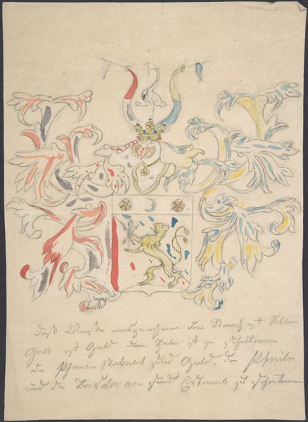 Curator: This watercolor, a Pennsylvania German birth certificate from 1937, isn’t just a document, it's a little poem disguised as practicality, don't you think? Editor: Absolutely, it feels very personal! It uses simple, bright watercolor and folk-art motifs—birds, tulips, and a rather enigmatic face—to celebrate a birth, right? How do we read all these different elements? Curator: That face… It’s the kind of moon-faced cherub that seems to follow you around the room, isn't it? And the birds, perched so proudly, flanking the Fraktur text—they are so endearing! Imagine someone meticulously crafting this as a heartfelt keepsake. But think about what is included: text surrounded by images… Does this suggest the family was concerned about record keeping? Editor: Hmm, maybe! The folk-art imagery is what really draws me in. It contrasts so much with what I think of official documents looking like. The Pennsylvania Regionalism style gives a sense of home. Curator: Yes, and what is home? For the Pennsylvania Germans, their Fraktur art wasn't just pretty decoration; it was a testament to their culture, faith, and connection to the land and language. Each flower, each bird, maybe even that slightly unsettling cherub, carries a silent story. The family could cherish this record, in their chosen style! What do you think these illustrations communicate that written text could not? Editor: I hadn't thought of it that way. They evoke an emotion that connects to memory, belonging, and shared identity. Curator: Precisely. It's a reminder that even official documents can be tapestries of love, memory, and cultural identity woven together with care and intention. This art object feels so much warmer than just a form! Editor: It's fascinating how folk art traditions enrich our understanding of everyday life. It has made me realize that the "simple" design speaks volumes.