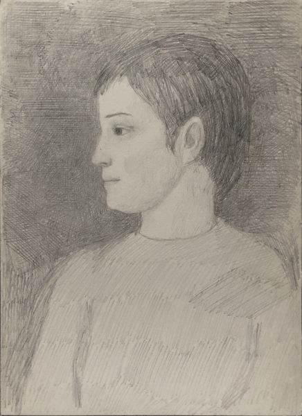 Editor: So, this is Hans von Marées' "Portrait of Klara Bruckmann," drawn around 1883. It’s a pencil drawing on paper and… she seems so lost in thought, doesn’t she? The simple lines create this air of quiet contemplation. What stands out to you in this piece? Curator: What I find compelling is how the artist uses the profile, a view laden with symbolic weight. Think of classical coins, regal portraiture. Why choose such a formal view? Is it to ennoble Klara, or does it subtly place her within a specific visual history? The barest use of line and the unfinished quality almost makes it seem like a memory, fleeting and fragile. Editor: A fleeting memory… I hadn't thought of that. I was just seeing her stillness. But now that you mention it, there is an ethereality. How much of that feeling is intentional, though? Was the drawing perhaps unfinished? Curator: Intentionality is key to iconography. Notice how the highlights on her face almost sculpt her, but also call to mind purity. Does this reference ideals of feminine virtue or perhaps innocence in a specific historical context? What does the minimal background contribute – emptiness or infinite potential? We need to unpack the cultural significance of simplicity. Editor: That's a really interesting way of looking at it. It makes you wonder about the dialogue between the artist and his subject. Curator: Exactly. And what dialogue do we, as viewers, then have with the image today, given all those layers of meaning it already holds? It is not just a portrait of a woman, but an echo of social conventions and timeless representations. Editor: I definitely see that now. Thinking about the history of representation and how it shapes our interpretation has opened up the drawing so much more. Thanks!