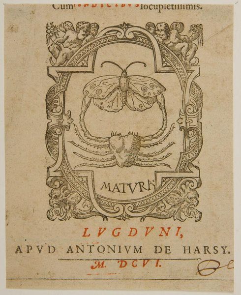 Editor: This is the Printer's Mark of Guillaume Rouille. It's undated, but it was made by an anonymous artist. What strikes me is its density; so many symbolic elements packed into one small space. How do you interpret this work? Curator: The printer's mark is a powerful visual declaration. The eagle, serpent, and putti are all freighted with cultural meaning. Notice how the eagle atop the globe suggests dominion, while the serpents entwined around the pillar evoke wisdom and transformation. What feelings do these symbols evoke? Editor: I see a tension between the earthly and the divine, ambition and knowledge. Curator: Precisely. The printer uses these symbols to convey his brand. It is a signifier that balances fortune and virtue, projecting an image of scholarly authority and reliability. Editor: It’s like a visual brand identity that speaks volumes about the printer's aspirations.