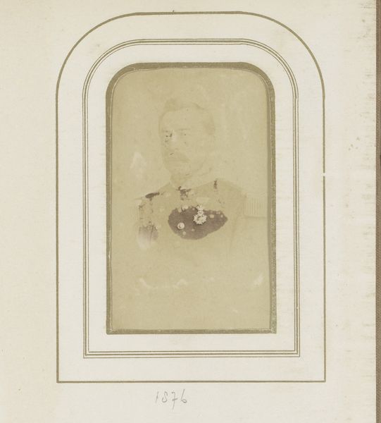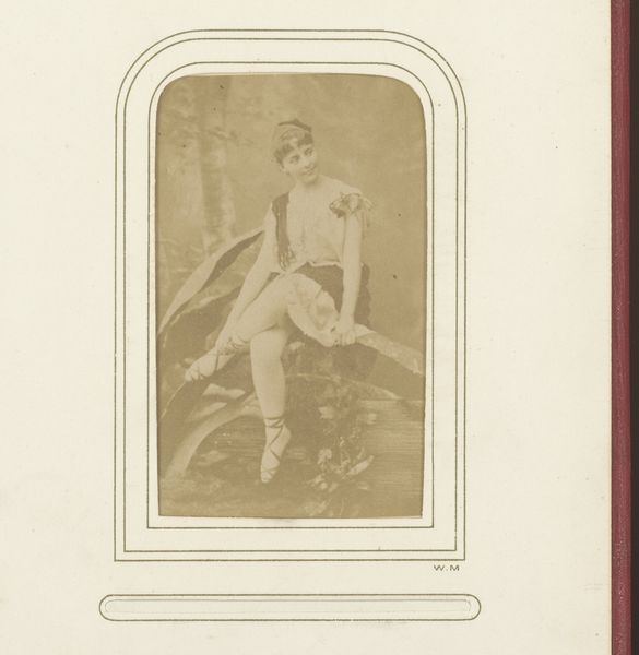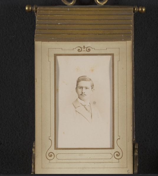This is a carte-de-visite, or visiting card, featuring an unknown woman, made with paper and photographic emulsion, likely sometime in the mid-to-late 19th century. At the time, these cards were a novel form of vernacular photography, a relatively inexpensive way for people to represent themselves. The photographic image itself is an albumen print, developed using a solution of egg whites to bind the photosensitive chemicals to the paper. This was a cutting-edge technology at the time, and the use of photography to create images of this kind, meant that cards such as these could be mass produced for commercial distribution. What is interesting here is the way in which the card has been decorated with graphic elements, such as the frame and the bird. These types of embellishments would have been added to further personalize and enhance the portrait, blurring the boundaries between photography, graphic design, and printmaking. It is a compelling reminder of how new technologies are always rapidly absorbed into an existing culture of craft.