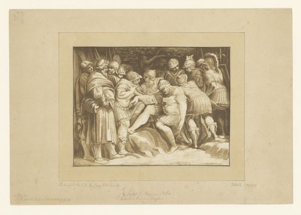Adam Friedrich Oeser created "The Death of Scipio" using pen and brown ink with gray wash on paper. The sepia tones imbue the scene with a sense of classical antiquity, a somber gravitas appropriate for its subject matter. The composition is carefully arranged, with the dying Scipio as the focal point, surrounded by figures whose gestures and expressions convey grief and concern. Oeser masterfully employs line and shading to define the forms and create a sense of depth. The cross-hatching and delicate washes give the drawing a sculptural quality, evoking the relief carvings of ancient Rome. We see the influence of Winckelmann’s theories on neoclassicism, emphasizing ideal forms and moral virtue. The artwork challenges the viewer to engage with themes of mortality, honor, and the transience of human glory. The artist uses formal elements to prompt reflection on the human condition and the values of classical civilization. "The Death of Scipio" serves as an exploration of aesthetic and philosophical ideals, inviting ongoing interpretation.