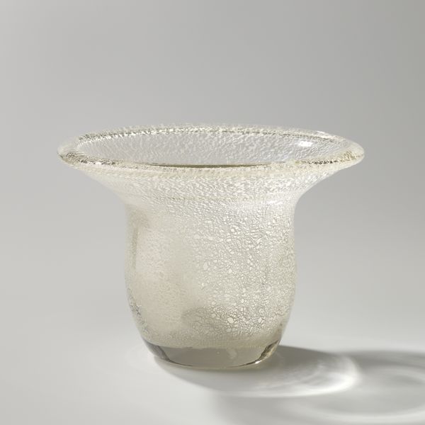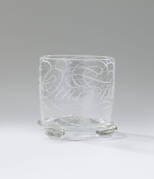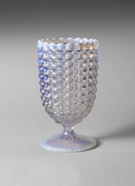 This glass was made by the Richards and Hartley Flint Glass Company, sometime between 1867 and 1890. Notice the clear glass punctuated by a pattern of raised circles, an effect achieved using a mold. The process involved gathers of molten glass being blown into shape, a skilled job requiring teamwork. Its decorative pattern is pressed into the glass as it cools. The resulting texture catches the light, giving the vessel an added visual dimension. The maker's decision to incorporate this subtle visual language emphasizes the object's construction, inviting us to consider its means of production. The glass industry was booming at this time, providing work for many, though laborers were subject to the demands of industrial capitalism. This object is a reminder that even functional, mass-produced items are imbued with the skills, labor, and social context of their making. It encourages us to reconsider the traditional divide between art and craft, questioning hierarchies of value.