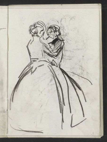 Isaac Israels sketched this standing woman with a child in her arms, using graphite on paper. It is a great example of artmaking as a process. What strikes me most are the lines; they're so tentative, almost searching. Look at how the form of the figures seems to emerge gradually, built up from a network of light, delicate strokes. This isn’t about perfection; it’s about the journey of discovery, like the artist is thinking through the image on the page. It feels like a moment captured on the fly, a fleeting glimpse of tenderness and intimacy. The quick, confident marks recall the work of Edgar Degas, particularly his sketches of dancers. Both artists share a knack for capturing movement and gesture with remarkable economy. Ultimately, Israels' drawing reminds us that art is a conversation, a continuous exchange of ideas and influences across time.