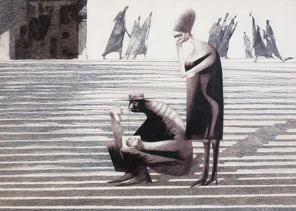Aleksandr Borodin made "Don't Make a Pitfall for Anyone" using oil on canvas. It presents a disquieting dreamscape. The Harlequin's act of digging could be interpreted as a critique of social systems. Painted in Russia after the fall of the Soviet Union, the picture encapsulates the mood of uncertainty in that era. The question mark in the background is a potent symbol for a people contemplating their future. The Harlequin, historically a subversive figure, could represent the artist questioning power structures. While the ladders and chairs suggest social mobility, the pitfall warns against the dangers of blind ambition. Borodin's painting doesn't provide answers, but it dares to ask the difficult questions about human behavior and society's pitfalls. Art historians might research Russian literature and philosophy of the time to deepen the understanding of this artwork. The meaning of art resides not just in the image, but also in the socio-political landscape that birthed it.