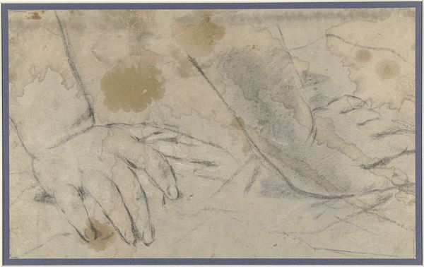 Jan Veth created this small drawing of two folded hands with pen in grey ink and brush in grey and brown watercolor. Veth was well known as a portrait artist and author during the late 19th century in the Netherlands. At the time Veth made this drawing, the representation of hands in art was often associated with skill, class, and gender. Here, the delicate rendering of the hands evokes a sense of intimacy and contemplation. The hands suggest a narrative of vulnerability, perhaps speaking to broader themes of identity and self-expression. While the hands might seem to represent an anonymous sitter, the study reflects Veth’s personal sensibilities as an artist, intellectual, and member of the cultural elite. Ultimately, Veth’s drawing captures a moment of human connection, inviting us to reflect on the subtle yet powerful ways in which we communicate through our bodies.