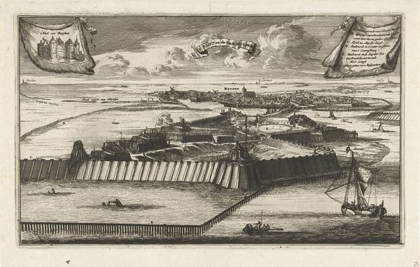 Curator: Here we have “View of the Favoriten Garden on the Rhine,” an engraving by Johann August Corvinus, likely created between 1693 and 1738. What strikes you first about it? Editor: The overwhelming detail, a visual feast. It's almost architectural in its precision, this elaborate landscape unfolds like a map, but a map with a soul. How does Corvinus achieve this depth and perspective using only lines? Curator: The material processes are fascinating, aren’t they? Think of the skilled labor needed for such a print. Engraving wasn’t simply about artistic vision, but specialized work, meticulously etching lines into the metal plate. The proliferation of images like this also speaks to evolving modes of information dissemination and social consumption during this period. Editor: Yes, and how those lines themselves function. See how the density and direction articulate volume and light? The composition—the way the artist guides our eye from the detailed foreground gardens to the hazy cityscape beyond is remarkably skillful, isn't it? It has a Baroque drama through meticulous execution. Curator: But it's also vital to remember that those visual qualities reflect societal hierarchies. Gardens like these weren't mere aesthetics; they were potent displays of wealth and control. Consider the human labor required to construct and maintain this idealized nature – a statement of dominance in itself. The means of this print's production and the society's wealth at that time enabled the garden's physical structure, which speaks to its ideological structures. Editor: True. We cannot ignore how the structure mirrors power. Yet, it’s more than just that. Note how Corvinus employs visual devices such as framing the composition with those majestic trees, drawing our focus towards the manicured splendor. And observe the tonal range, that delicate interplay between light and shadow…It almost seems tactile. Curator: For me, the really exciting dimension comes from recognizing the layers of work and cultural values encoded here. The print enables broad viewership, the garden represents land ownership, and together they promote an unsustainable way of relating to land, labor and capital. What might be different if different practices were put into production? Editor: Perhaps...But even beyond all of the commentary on class and the human cost of production and acquisition that the garden symbolizes, I appreciate its masterful design. What a stimulating, intricate achievement in printmaking. Curator: Agreed. And that, too, makes it all the more complex.