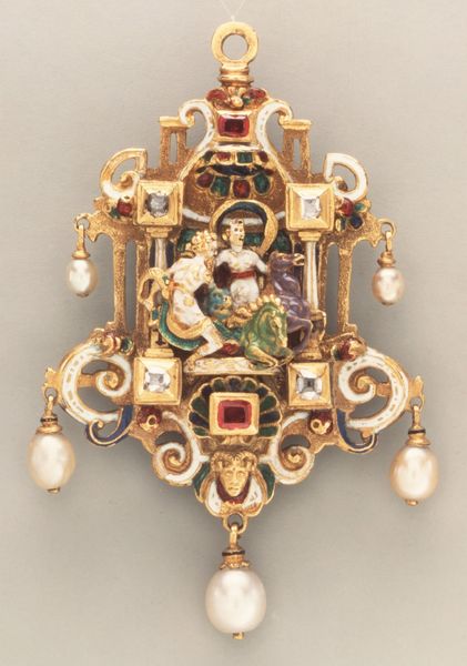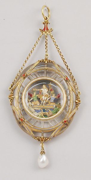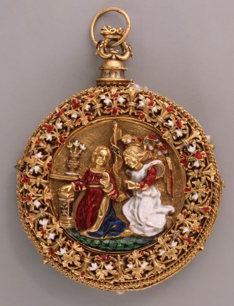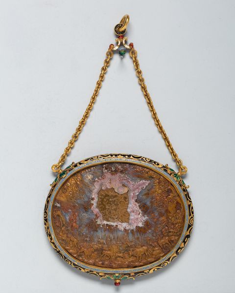 Editor: So, here we have "Pendant with Scenes from the Life of Christ and Two Saints," created sometime between 1865 and 1900, attributed to Reinhold Vasters. It’s currently at the Metropolitan Museum of Art. What strikes me most is how incredibly detailed and miniature everything is. It’s breathtaking! What’s your interpretation? Curator: The sheer opulence, isn't it striking? Think about the socio-political context in which this piece emerged. The late 19th century saw a surge in historicism – a revival of earlier styles. This pendant likely served not just as a personal adornment, but also as a display of wealth, religious affiliation, and social standing. How might its display function for the intended audience? Editor: Hmm, I see what you mean. Wearing it would be a very public declaration, a miniature sermon of sorts hanging from their neck! How much of this type of jewelry was displayed and how much was worn privately? Curator: Exactly! It’s about communicating power and taste. But beyond its symbolic function, we need to also think about the forces shaping its reception. Who were the patrons of such ornate pieces? Were they part of a specific social class or religious group? Editor: Knowing that it was more than decoration, it makes you wonder about the original owner’s story. Curator: Precisely. Objects like this are fragments of social history and tell of an historical era. Thanks for prompting me to think beyond visual description.