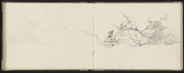 Curator: This lovely drawing, dated 1766, is entitled "Ornamentele versiering van bladeren" and is attributed to P. Baretti. The materials listed include drawing, ink, and paper. Immediately striking, wouldn’t you agree? Editor: Immediately! It reminds me of delicate seaweed swaying in an unseen current, rendered with such careful precision, as if capturing a fleeting moment in a Baroque dance of nature. The aging of the paper adds a ghostly presence. Curator: The materiality is key here. The aged paper, the fine lines created by pen and ink, remind us of the labor involved in such meticulous ornamentation. These botanical flourishes speak to a culture steeped in craft, where even the smallest detail received devoted attention. We see a blurring between artistic creation and the industrialization of ornamentation. Editor: It does! And there’s a stillness despite the inherent motion suggested by the leaves. Do you feel how much intention can be found even within what would ostensibly serve merely a decorative purpose? These ornamental leaves could be interpreted as allegorical sketches hinting to a grander vision. Curator: Precisely. These sketches offer insight into artistic workshops, exploring a convergence of design and commerce of the era. The ornamentation isn't merely aesthetic, it’s also deeply intertwined with economics. Editor: Exactly. Considering how it's from a sketchbook, this intimate context is an intriguing space between the planning stages and realized artwork. It holds all this potentiality, an energy just waiting to leap off the page. It’s interesting seeing this sort of almost playful rendering of what one presumes to be ornament templates within a serious, historical context. Curator: The fact that it’s a sketchbook reinforces that. We are seeing a slice of daily workshop life, of craft processes, a negotiation between mass manufacture and skilled, specialized labour. Editor: A dance between utility and vision, between nature and artifice! Puts things in perspective, doesn’t it? Curator: It certainly does. The drawing shows how so much goes into creating even the simplest of ornamentation. Editor: Beautiful. Let’s move on; I wonder what other treasures await us?