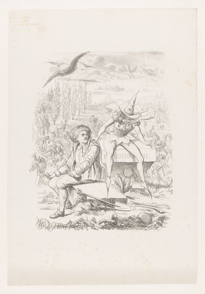 This is Jean Baptiste Guélard's etching titled 'Aap verjaagt een roofvogel', showing an ape dressed as a man, fending off a bird of prey. Here, the motif of an ape dressed in human clothing mocks human behavior by presenting an animal in a caricature of human society, a theme that was popular in 17th and 18th century art. Consider how this symbol has been used to explore the boundaries between humans and animals, between nature and culture. These images are not just amusing; they often reflect deeper anxieties about human nature and the social order. The ape's exaggerated gestures may convey intense emotional states, engaging viewers on a deep, subconscious level. As seen in other contexts, such as ancient Egyptian art, animals take on human characteristics. This recurring phenomenon is how cultural symbols evolve, resurfacing and taking on new meanings across time.