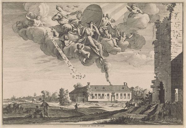 Isaac Sorious created this etching titled "Franse troepen trekken plunderend en schietend door de ruïnes van het dorp Nigtevecht, 1672". This image captures a moment during the Franco-Dutch War, reflecting the widespread violence and social upheaval of the period. The ruins evoke a sense of loss and displacement, prompting us to consider the impact of war on civilian populations. In the print, French troops are shown pillaging the village of Nigtevecht, their actions suggesting a breakdown of social order. Consider how class distinctions are blurred by the chaos of war. The soldiers, often drawn from marginalized communities, become agents of destruction against another vulnerable population. This work invites reflection on the cyclical nature of conflict, revealing the complex interplay of power, identity, and historical narrative. It serves as a poignant reminder of war’s lasting impact on both individuals and communities.