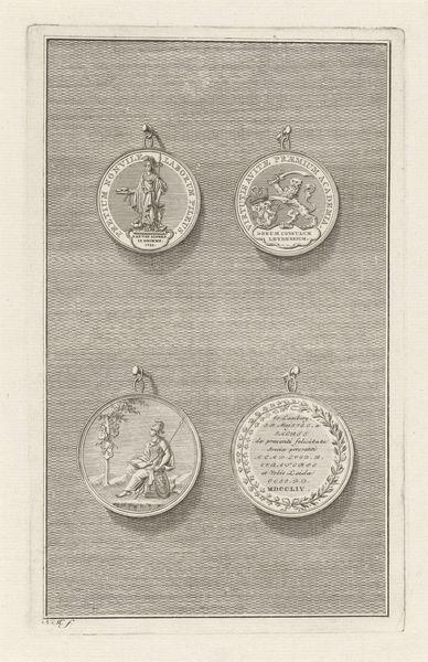 Pieter de Mare made this undated print, Vier Zegels, using etching and engraving. The print presents four seals depicting regal figures. Seals served as symbols of authority, validating documents and asserting power. Their repeated depiction here points to the social and institutional importance of authority in the Netherlands. We can analyze these seals to learn about the structures of power in the Dutch Republic and the cultural values it embraced. The imagery, inscription, and even the materials used in the seals offer insights into the political landscape of the time. Were these seals revolutionary for their time or conservative? By studying historical documents, archives, and collections of similar artifacts, we can better understand the meaning and significance of these seals within their original social and institutional context. This type of analysis reminds us that art and history are always intertwined.
