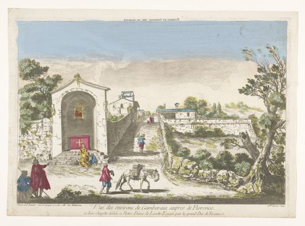 This undated rendering of the Utrechtsepoort in Amsterdam, by an anonymous artist, presents a landscape rendered in soft washes of color. The muted palette creates a tranquil atmosphere, contrasting with the dynamic scene of horsemen traversing the waterway. Notice how the composition is structured around a series of horizontal lines, creating a sense of depth. The lines of the architecture and the bridge draw the eye towards the horizon, culminating in the windmill. The artist balances the architectural elements with organic forms such as the trees and clouds, creating a harmonious visual tension. The presence of figures on horseback suggests an engagement with movement and the everyday lives of the people. While appearing representational, the scene transforms into a play of forms and colors. The work invites us to contemplate the relationship between space, representation, and lived experience. The very act of depicting the gate, a threshold, opens a discussion about passages, boundaries, and the nature of pictorial space itself.