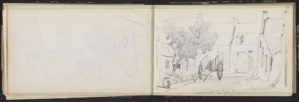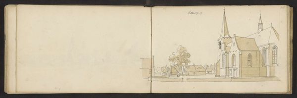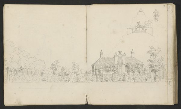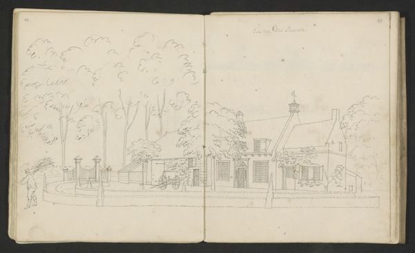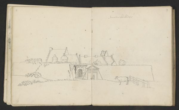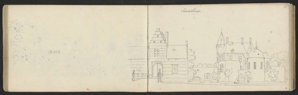 Editor: So, this is a pen and ink drawing called "Kasteel Staverden bij Ermelo" by Abraham de Haen the second, likely made sometime between 1732 and 1736. It's currently held at the Rijksmuseum. I'm struck by how informal it feels. It has this very intimate feeling, like a glimpse into the artist's personal sketchbook. What do you see in it? Curator: I see a powerful document reflecting the privileges of the Dutch Golden Age but also its inherent instability. De Haen's sketch depicts Staverden Castle, a site symbolic of power and aristocracy. However, rendered in a humble pen and ink sketch, there’s an implicit acknowledgement of the fragility of such institutions, especially as the Dutch Republic was starting to face challenges to its dominance in the 18th century. How does the artist's choice of medium – a simple pen and ink drawing – influence our perception of the castle and its socio-political context? Editor: That’s an interesting point. If it was a grand oil painting, it would communicate something very different. The informality strips away some of the grandeur and focuses on the basic structure. I wonder, did the Dutch Republic's citizens begin to question the prevailing hierarchies around them, which caused this shift toward simple, intimate art? Curator: Absolutely. There was growing social critique of wealth disparities, colonial exploits, and the ruling elite. Artists were starting to reflect these tensions. The sketchbook format suggests an individual grappling with these changes rather than a commissioned piece meant to glorify the elite. Editor: I hadn’t considered that. So, even a simple drawing of a castle can tell us a lot about societal shifts and anxieties during that period. Curator: Precisely. It prompts us to consider whose stories are told, and how those stories are mediated by artistic choices. Think about whose narrative this castle traditionally represented and how De Haan is subverting this through the quick sketch. Editor: I see what you mean! I initially viewed this as just a simple landscape, but now I see how it's so much more loaded than that. Curator: Exactly, art, at all times, can show both individual stories, and cultural perceptions about race, politics, gender, and social identities. Editor: Thank you, it helps me to remember this with the next artworks I view.