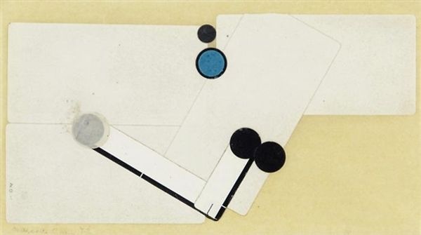 Curator: Looking at this piece, I feel an immediate sense of... spaciousness. It’s like peering into some quiet corner of the universe, a sort of geometric haiku. Editor: Indeed! We're standing before László Moholy-Nagy's "AXL II," painted in 1927. The work is done in acrylic paint. It exemplifies his commitment to Bauhaus principles, where functionalism, design and modernism meet, where art strives toward simplicity. Curator: Bauhaus! Ah, yes, the art world's minimalist phase! I mean, look at it, floating black circle and intersecting lines on a largely blank canvas—it feels so elemental, almost like a blueprint for… something. Maybe for living itself. Editor: Exactly. The painting strives toward the essential, simplifying reality into a balanced equation, echoing industrial design, rejecting bourgeois artistic conventions by using abstract geometry to reach pure forms. Moholy-Nagy used geometry not merely for design's sake but to explore utopian social structures that rejected traditional models. Curator: I appreciate this "utopian vision". Still, I find the austerity quite unnerving, an almost chilling lack of human touch! No brushstrokes to reassure us of the artist's presence, so perfectly rendered and devoid of flaws. Was it even made by human hands? Editor: Absolutely, but the human hand striving for machine-like perfection, rejecting traditional humanism. As part of the Bauhaus movement, Moholy-Nagy was fascinated with modern technology. As such, "AXL II" reflects both his and his contemporaries' concerns about integrating technology into culture. Curator: Okay, point taken. But, standing here now, I see the impact that kind of thinking had on everything! Minimalist architecture, graphic design—all these sleek, spare aesthetics owe something to the brave new world these artists were imagining, no? Editor: Precisely. And, let's consider that Moholy-Nagy believed abstract art could be universally understood. "AXL II," for him, could thus be a communication piece, an art that cuts through national or class divides, by embodying pure feeling and form. Curator: You’ve nudged me. I am struck now how very radical an idea "AXL II" would've been at that time—to create an art seemingly untethered from any conventional narrative. It requires work, this piece, to appreciate—it's more a quiet contemplation. Editor: Yes, a work of art demanding of us not passive viewing, but a mental dialogue, inviting one to see the bare bones, to understand something new and universal about structure itself. And perhaps, ultimately, to design a better reality.