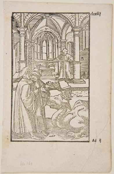 Curator: This is Hans Holbein the Younger's woodcut, "The Bowls of Wrath," residing here at the Harvard Art Museums. The precision is startling. Editor: Yes, the stark contrast and dynamic composition really grab you. It feels quite ominous and teeming with tension. Curator: Holbein was a master of printmaking, and this piece showcases his skill with line and form to convey complex narratives. Think about the labor involved in producing such detail. Editor: The swirling clouds and cascading figures are wonderfully expressive, creating this sense of impending doom. Semiotically, each figure conveys a distinct element of fear. Curator: He's clearly drawing from the Book of Revelation, depicting divine punishment. This would have been a commentary on religious and social upheavals of his time. Editor: The texture in the lines is so meticulously done; the crosshatching creates depth in the scene. Even the very feel of the paper is a part of the experience. Curator: Absolutely. Holbein's technique allowed for widespread dissemination, a sort of mass production of moral messages during the Reformation. Editor: It really pulls you in and rewards sustained viewing. Curator: It's amazing to think how this accessible art spread such powerful ideas. Editor: Indeed. A remarkable piece from a master artist.