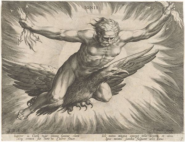 Curator: This drawing from 1905 is called "Prometheus in Chains", it's by Frantisek Kupka and created using pencil, ink and pen on paper. The movement and energy it radiates really grabs you, doesn’t it? Editor: It does. I see struggle, of course, but almost more defiance than suffering. It feels… raw, primal. The medium, those quick, restless lines of ink and pencil, certainly amplify that sense. The whole composition feels ready to bolt off the page. Curator: Absolutely. That tension is at the heart of the Prometheus myth, isn't it? This symbol of the rebel against the divine order, chained as punishment for bringing fire to humanity. The bird gnawing at his liver, a brutal cyclical torture, but Kupka makes it more of a wrestling match. Editor: The bird—I think it's an eagle—certainly dominates. It's interesting that Kupka foregrounds the instrument of torture, not the agony of Prometheus. Look at the chorus of figures at the bottom of the frame, almost ghost-like, expectant... are they humanity saved, or witnesses to the god’s wrath? Curator: Ah, the ambiguity. The wonderful thing about allegories and myths. The ambiguity that speaks to enduring relevance. Is he showing us humanity rising because of Prometheus or humanity that still faces its problems and are eternally waiting for solutions? Also look how much empty space surrounds Prometheus. The hero appears so alone in his act, as though unsupported by his community. Editor: And notice the composition. The lines, the use of stark contrast, feel very modern, even though the theme is ancient. But is it "Pre-Raphaelite"? It has echoes, but the almost frantic energy sets it apart, wouldn't you agree? I see a precursor to something else, maybe even the artist’s later explorations of abstraction. Curator: I think you're right. It's as though he's wrestling with the old masters and finding his own voice simultaneously. One foot in the world of symbols and myth, and the other firmly pushing towards a future vision of art. Editor: It is thought-provoking, I admit, this raw struggle depicted through very classical symbols makes for an unexpected conversation with modernity. Curator: Ultimately, this drawing, "Prometheus in Chains", seems to ask us: What price are we willing to pay for progress, and who ultimately benefits? Editor: And the symbols he uses make us think about our human limitations and our courage, or lack of. Pretty impressive stuff for something sketched on paper more than a century ago, don't you think?