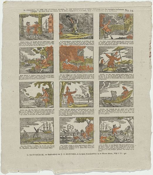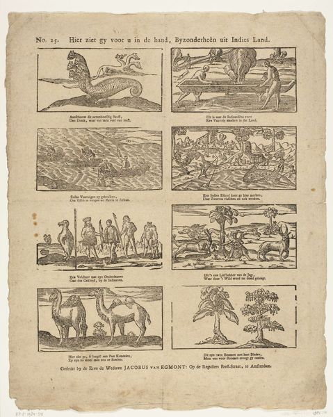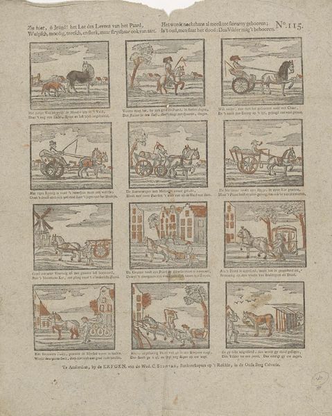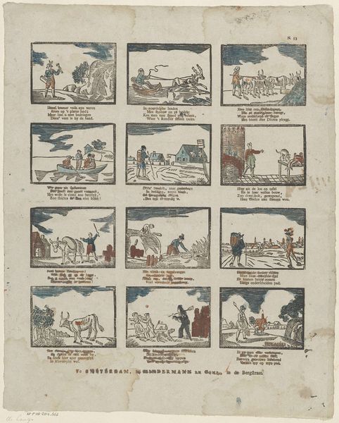 Jacobus Thompson created this print using etching in the Netherlands, though its precise date is unknown. This work encapsulates the Dutch societal values of encouraging education and cultivating a love for art from a young age. The print is divided into twelve scenes, each depicting everyday life and landscapes, designed to capture a child's imagination and instill an appreciation for the world around them. The inclusion of Dutch landscapes is no accident. The unique geography of the Netherlands, with its canals, windmills, and coastal views, deeply influenced Dutch art and identity. This print would have familiarized children with their environment, reinforcing their cultural identity and sense of belonging. Prints like these are fascinating because they shed light on the cultural values and educational practices of the time. Researching the history of Dutch education and childhood literature would give a fuller understanding of its significance. This print underscores how art serves as a tool for shaping young minds and transmitting cultural values.