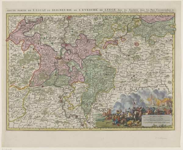 Editor: This is H. Klockhoff's "Map of Gelderland," created in 1792. The engraving seems so detailed, yet the province seems sparsely populated. I wonder, what stories can we unearth from the symbols embedded in this map? Curator: Observe how the map utilizes landscape not only for navigation, but as a narrative device. Cartouches, for instance—the decorative title areas—often carried symbolic weight. Do you see any evidence here of the Gelderland's historical narrative? Consider what's emphasized or omitted. Editor: I notice the prominent rivers. Are they more than just geographic markers? Curator: Rivers are the lifeblood. They dictate trade, cultural exchange and potential conflict. Are they presented naturalistically, or with a kind of agency? Note how meticulously forests and waterways are rendered, but towns might be generalized, for instance. What might that suggest about the values of the people commissioning and using this map? Editor: That’s fascinating! So the artist wasn't just recording geography; he was interpreting it through a specific cultural lens? The use of symbols, even subtle ones like font choices for place names, communicates values. Curator: Exactly! Each element, each choice whispers of cultural priorities and assumptions of this era. Look at the borders-- how clearly they delineate one political body from another. What underlying cultural assumptions might this reflect? Editor: It shows the emphasis placed on regional identity and territorial control, definitely reflecting the concerns of the period. Now I can see so many possible meanings in this piece! Curator: Indeed, a map transcends simple wayfinding; it embodies its culture's deepest self-image. We should both now observe maps with new awareness of symbolism.