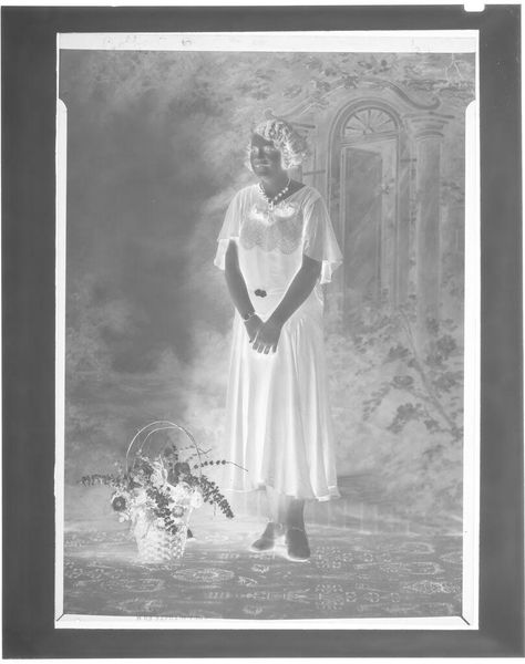 Editor: This is John Deusing's "Untitled (priest with little girl in white dress)." It's an older black and white photograph that has this ethereal almost ghostly quality. What strikes you about it? Curator: I notice the photographic process itself. This looks like an early photographic print, perhaps a silver gelatin print. Its materiality and the labor involved in creating this single image are significant. Editor: How so? Curator: Think about the social context of photography at this time. It wasn't the instantaneous act we know today. It required specific materials, darkroom labor, and a certain level of economic privilege to commission such a portrait. It speaks to the values placed on representation and documentation within a specific class. Editor: I see. So, it’s more about the making and less about the people? Curator: Not entirely, but understanding the means of production offers a richer understanding. Editor: That’s a perspective I hadn’t considered. Thanks!