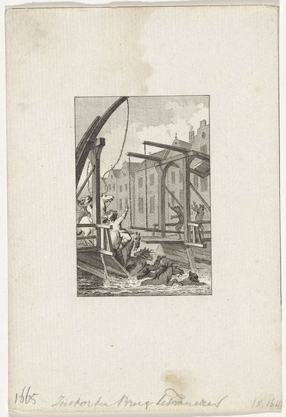 This print by A. Lutz captures the ruins of the New Lutheran Church in Amsterdam after the fire of 1822. The image is created through etching, a printmaking technique where lines are incised into a metal plate with acid, then inked to produce an image. The print emphasizes the heavy labor required to rebuild after such devastation. We see figures clearing debris, their forms rendered with precise lines that highlight their efforts. The etching process itself mirrors this labor-intensive theme, requiring careful craftsmanship and time to create the intricate details of the ruined architecture. By focusing on the materiality of the damaged structure, the print prompts us to consider the social implications of destruction and reconstruction. It serves as a reminder of the human effort embedded in the built environment, challenging any separation between art, labor, and the historical context in which they are produced.