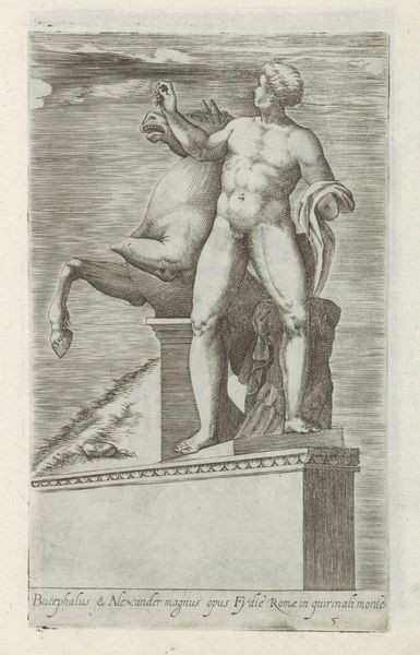 Editor: This engraving, "Man pressing down a harpy" by Giuseppe Maria Mitelli, depicts exactly that, a man and a harpy. I’m struck by the raw physicality of it. What is your perspective on this piece? Curator: Looking at the materiality, consider the copperplate engraving process. The labor involved in creating this image – the tools, the press, the ink – speaks to a broader culture of printmaking and its role in disseminating ideas and images. How does understanding this production method change your view of the work? Editor: It makes me think about the labor and accessibility of the image. Curator: Exactly. It moves beyond just the narrative of man versus harpy and into thinking about the social context of its creation and consumption. Understanding that, what do you make of the harpy’s presentation? Editor: I now see it within a larger system of production and exchange. Thanks for the insight!