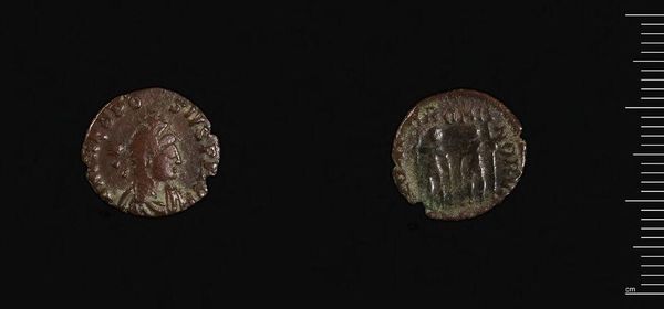 Editor: This is a coin of Hadrianpolis under Commodus, residing in the Harvard Art Museums. It feels like holding a miniature time capsule. What imagery stands out to you? Curator: The portrait of Commodus, though worn, embodies imperial authority and the power of representation. What figure do you see on the reverse? Editor: I think it's a standing figure, maybe a deity? Curator: Precisely. Coins served as propaganda, circulating images that reinforced the emperor's power and connected him to divine figures. Consider the psychological impact of seeing the ruler's face daily. Does that change how you view it? Editor: It's fascinating to think about how images on coins were used to shape public perception. Curator: Indeed. Through these symbols, we gain insight into the cultural memory and power dynamics of the Roman Empire.