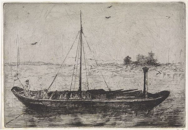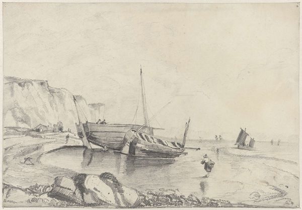Willem Roelofs made this drawing, 'Vissersboten in een landschap te Papendrecht,' with graphite on paper. The composition, with its muted tones and hazy atmosphere, evokes a sense of quiet contemplation. Roelofs masterfully uses line and shading to delineate form. Notice how the subtle gradations in the sky create a sense of depth. The artist employs short, broken lines to capture the texture of the water, contrasting with the smoother, more continuous lines defining the boats. This interplay of textures adds a tactile dimension to the visual experience. The sketch encapsulates a particular moment in the Dutch landscape, yet it transcends mere representation. It invites us to reflect on the relationship between humanity and nature. The drawing’s strength lies in its ability to prompt a meditation on our perception of space, form, and the ephemeral quality of light.