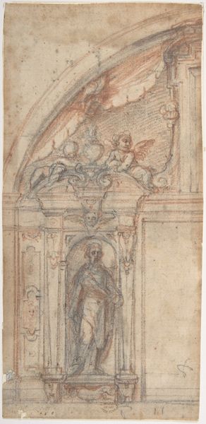 Curator: The work before us is "The Flagellation," an etching by James Ensor, dating to 1886. Editor: There’s a palpable sense of struggle embedded in that scene—almost as if the very architecture is being strained by the weight of violence. Curator: Ensor often employed religious themes to explore societal critiques. "The Flagellation," beyond its biblical context, represents the persecution and suffering endured by marginalized groups. Consider the composition. Editor: Right—the way the figures at the bottom seem crushed between the ornate structure above and the harsh reality of their circumstances—it’s claustrophobic, hinting at social constraint. Who holds power, and how do they inflict suffering? The symbol systems become a question: who's Christ in this context, and who are the crucifiers? Curator: The gothic architecture is deliberately overwhelming; it stands as a symbol of established order. Ensor highlights its oppressive aspects by setting the flagellation in such imposing architectural stage, echoing centuries of oppression sanctified by tradition. Editor: And you can almost hear the echo, the enduring scream through history, right? That repetition of cruelty becomes almost liturgical within those arches. Ensor is pointing to how history repeats itself, not just in a religious narrative, but across eras and social classes. It transcends the spiritual, becoming a commentary on continuous, cyclical patterns of injustice. Curator: Precisely! He is using the flagellation as an iconographic stand-in for the pain perpetuated by systemic structures of authority. The masks, if we can look past the religious references and into Ensor's cultural context, appear everywhere in Ensor’s work as a commentary on societal performance, the guises under which cruelty and power are concealed. Editor: Ultimately, Ensor pushes us to question not just the historical event but the present reality, prompting us to reflect on how systems continue to flagellate—figuratively or literally—the vulnerable and the oppressed. It demands engagement rather than passive observation. Curator: An enduring mirror, revealing not just historical pain, but present-day reflections, don’t you agree? Editor: Yes, exactly. A poignant reminder of the burdens we continue to bear—both individually and collectively.