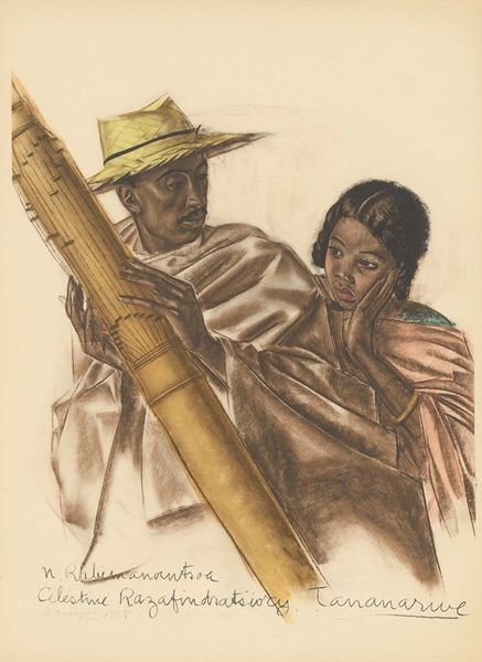This watercolor titled 'Afrikaanse vrouw met kind en boomstam', or 'African woman with child and tree trunk,' was made by an anonymous artist. It's a poignant reflection of a colonial gaze, shaped by the complex history of cross-cultural encounters. The image presents a woman carrying both a log and her child, a representation that speaks volumes about labor, motherhood, and survival. The anonymous nature of the artist invites us to consider the power dynamics inherent in image-making during periods of colonial expansion, as well as how they saw people from other cultures and walks of life. The details of her clothing, the wood she carries, and the child on her back all tell a story, one that emphasizes both the burdens and the resilience of women in such contexts. Think about how the artist chose to depict her. The red beaded necklace stands out against the muted palette. The child seems secure and calm. What does this say about the emotional dimensions of this scene? It can encourage us to reflect on the societal issues of that era and the emotional and personal lives of those living in it.