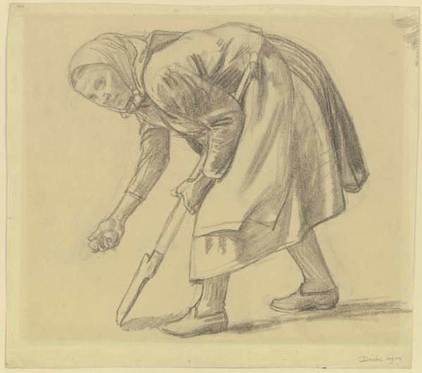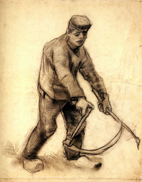 Vincent van Gogh made this drawing, Peasant Woman Digging, using pencil on paper in the Netherlands sometime around 1885. It is one of many studies of peasant life he created in the early part of his career. In it, we see a woman bent at the waist, digging with a tool that looks something like a shovel. Van Gogh's choice of subject speaks to the artistic interest in everyday life that grew throughout the 19th century. He was invested in depicting laborers and working-class people, a subject most famously taken up by Realist painters like Courbet and Millet in France. But unlike Millet, who often imbued rural life with a sense of piety and nobility, Van Gogh’s image is filled with struggle and hardship. The woman’s form is hunched and strained, her labor unromanticized. To appreciate Van Gogh's motivations, one might turn to his letters and the history of Dutch Realism. These resources help us understand how artists sought to represent the changing social landscape of their time.