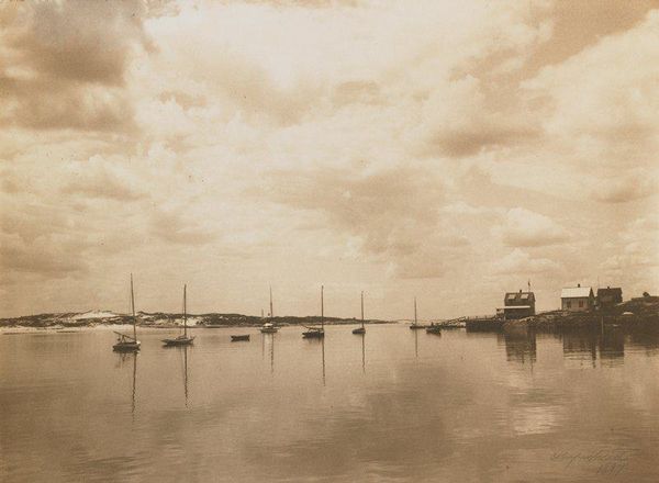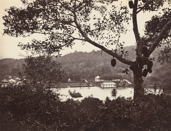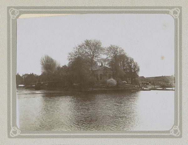 Curator: Our next piece is an early 20th century photograph, titled "Riviergezicht," dating between 1910 and 1914, its creator remains anonymous. Editor: It's very quiet. A hazy light filters through the foliage, creating a sort of tranquil, contemplative mood. There’s a deliberate blurring of the distant riverbank. Curator: What intrigues me is the anonymous photographer's clear command of the photographic process. The image quality, for instance. What kind of photographic paper would have produced that sepia tone, that matte surface? The availability of materials tells us something about this particular place and the broader culture in this period. Editor: For me, the dark trees framing the water suggest a gateway to the unknown. Water is such a potent symbol – of cleansing, of the subconscious, of change. The hazy distance promises possibility, but the murky foreground feels like a barrier, full of hidden obstacles. Curator: That notion of a “barrier” – I wonder, considering the limitations of early photography, about the sheer physical labour. Hauling the equipment, preparing the chemicals. Perhaps the foreground is not just an artistic choice, but simply the most stable position the photographer could achieve. It reflects their effort. Editor: I can appreciate that idea of grounded reality, but that doesn't negate the symbolism. The photograph pulls on a universal memory - an ancestor stood just so. Staring across such waters, wondering if what lies ahead will make the hardship worth it. Curator: Possibly. It's always tempting to project onto the past but there's value too in seeing the concrete realities - a trade route along the river. Did the photographic supplies even arrive upriver in a timely way? How does that condition the choices available to a photographer in such circumstances? Editor: A compelling contrast, the pull of the unseen against the grain of everyday reality. Perhaps that’s the enduring appeal of "Riviergezicht". Curator: Yes, and it highlights, for me, how the material realities shaped the symbolic representation and our reading of this image today.