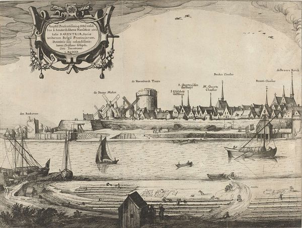 Gaspar Bouttats created this print of Sluis using etching in the late 17th century. It offers us a glimpse into the complex interplay of commerce, defense, and civic identity in the Dutch Golden Age. The work depicts Sluis, a town strategically important for its access to the sea. Bouttats emphasizes the town's fortifications, illustrating the ever-present concerns about trade and territory in the young Dutch Republic. Note how sailing vessels populate the waterway, underscoring the economic lifeblood of the region. The image also reveals the hierarchy of urban life, with the church and prominent buildings defining the town's silhouette. To understand this print, one must delve into the history of Dutch urbanism, its military engineering, and the role of maritime trade in shaping its culture. Archives, maps, and civic records all help to expand our understanding. The meaning of art is always enriched by its social and institutional context.