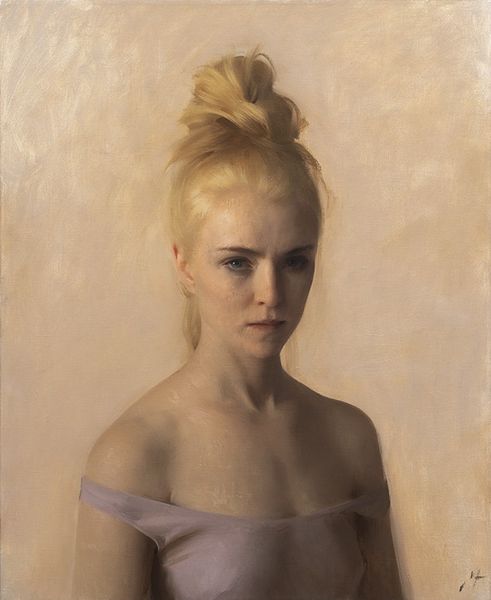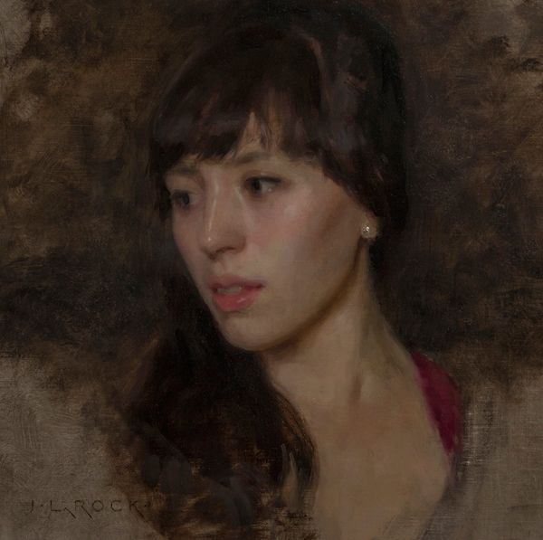 Adrian Gottlieb painted this portrait of Jennifer Fabos in oil, continuing a long tradition of portraiture. It encourages us to consider the place of figurative painting in contemporary art. We see a woman depicted in a style reminiscent of the Old Masters, with its emphasis on light and shadow, and a limited color palette. The dark background and the subject's averted gaze create a sense of introspection. Gottlieb was trained in Florence, and this portrait certainly reflects the values of academic painting, especially in its prioritizing of technical skill. However, Gottlieb is working in a very different institutional context than those historical examples. We might ask whether such traditional approaches to art can still speak to our contemporary social concerns. The answer to this question lies in the study of the changing institutions of art: academies, galleries, and museums. Through archival research and analysis of cultural trends, we can better understand the ongoing dialogue between tradition and innovation.