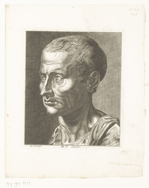 Curator: Look at the economical use of line here! What do you make of this print by H.P. Hansen, titled "Don Quixote?" It's from sometime between 1829 and 1899. Editor: My first thought is weariness. The heavy, almost frantic ink strokes around the eyes give the impression of a man profoundly tired, perhaps disillusioned. Is this how Hansen interpreted the character? Curator: It certainly seems so. He emphasizes the idealism etched in Don Quixote’s face – the almost manic gleam in his eyes juxtaposed with the sagging features. The sharp nose and goatee become visual symbols of his deluded nobility. It makes me think of Cervantes' themes of imagination versus reality. Editor: I’m curious about the choice of ink and printmaking for such a subject. Was it meant for mass distribution? The lines, though expressive, have a reproducible quality that contrasts sharply with the singular heroism Quixote embodies. What statement does that make? Was Hansen reflecting on the commodification of heroism, even in art? Curator: That's insightful. Consider how prints often democratized art, making images and ideas accessible to a broader public. Perhaps Hansen saw Quixote's story as a universally resonant one, meant to inspire even the most ordinary person. It suggests the ideal is attainable, if we are ready to charge towards windmills. Editor: Or that mass production flattens nuanced meaning, turning a complex figure into a simple emblem. What's more, what kind of paper and ink did Hansen have access to? I would venture to guess this wasn't expensive materials. The quick gestures speak of economy in resources, or an urgency of creative production with minimal material constraints. It's all pretty striking, isn't it? Curator: Absolutely. It really causes one to ponder the intersection of idealism and reality. It leaves us asking whether it's a warning or encouragement for our present day. Editor: For me it triggers the thought: how the means of reproduction influence not only the image itself but the reach and meaning of its message. Intriguing.